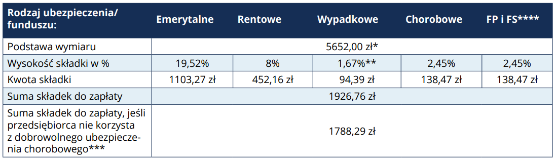 Minimalna podstawa wymiaru składek w 2026 r. wynosi 5 652 zł (60% z 9 420 zł).