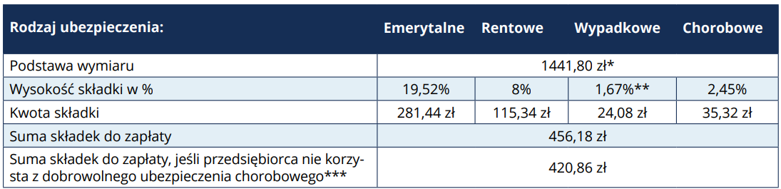 Podstawa wymiaru składek preferencyjnych w 2026 r. wynosi 1 441,80 zł.